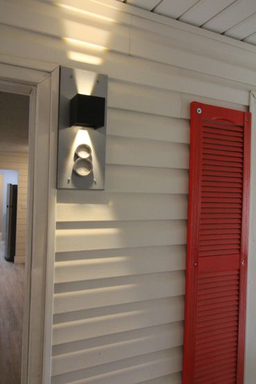 Door hardware is in upgraded, brushed nickel ,square, lever design from the Kwickset contemporary series. Ladder pull, brushed nickel door pulls in kitchen and on bedroom closet doors. We even changed out all door hinges to match.